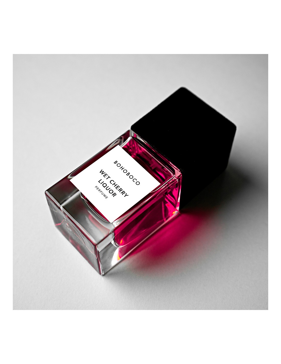 El perfume WET CHERRY • LIQUOR de la línea BOHOBOCO • PERFUME es un viaje hipersensual, casi erótico, a las profundidades de las tentaciones y los recuerdos. Es la búsqueda de la euforia que trae el renacimiento interior. Combinan el licor embriagador, que nos introduce en la edad adulta de las sensaciones apasionadas, y el tentador sirope de cereza, que simboliza los inicios del deleite inocente. Estas sensaciones se nutren de caramelo y un sutil toque de fresa con un profundo aroma de sándalo y vainilla aromática. El anhelo se mezcla con la plenitud, y la fuerza afrutada se complementa con los expresivos y especiados acordes de la madera de vetiver y el intenso y especiado aroma del haba tonka. La composición madura y provoca, y al mismo tiempo envuelve sensualmente nuestro cuerpo cálido y excitado.